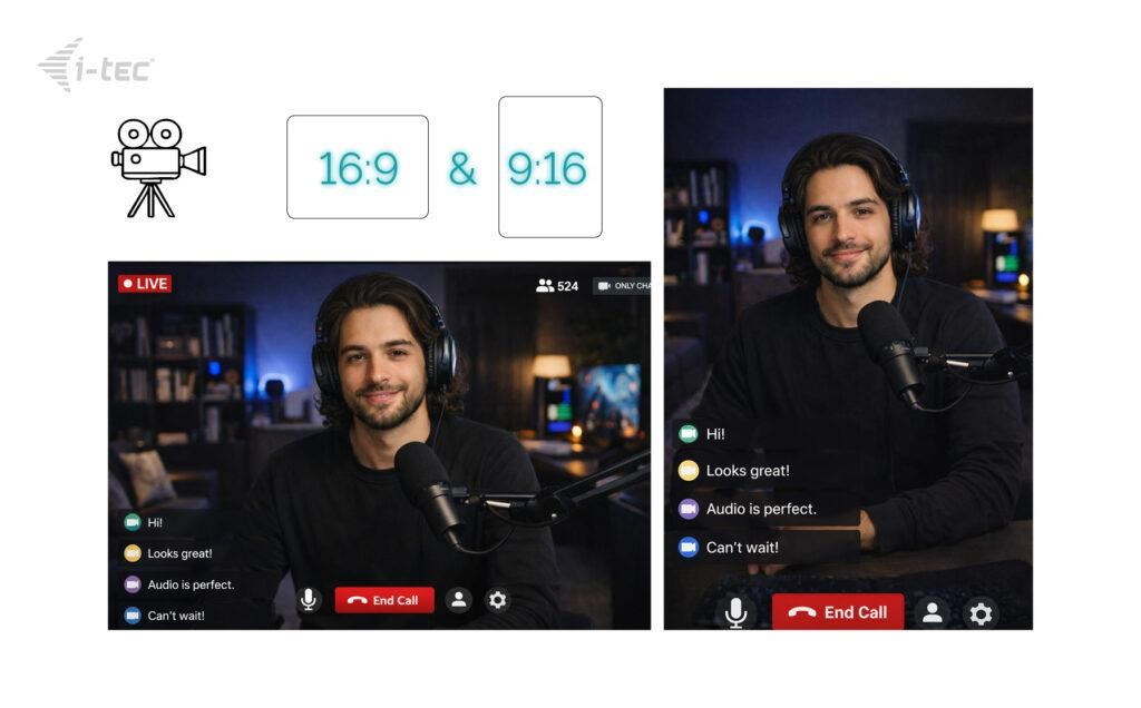 Otočení objektivu až o 90° pro přepínání mezi poměry stran 9:16 a 16:9