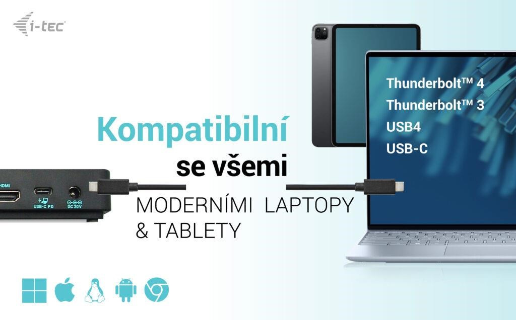 Vysoce výkonná dokovací stanice USB-C nové generace, která podporuje výstup až na tři externí monitory ve vysokém rozlišení až 4K. Dokovací stanici lze používat prakticky se všemi notebooky vybavenými porty USB-C, USB4 a Thunderbolt“ 3/4 a zároveň podporuje všechny běžné současné operační systémy.