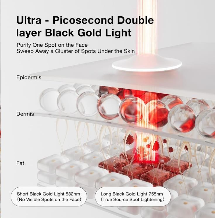 JOVS Blacken Pro využívá technologii DPL (Dye Pulsed Light), která je pokročilou a přesnější verzí známé technologie IPL. Zatímco IPL využívá široké spektrum světla, DPL se soustředí pouze na "zlaté" pásmo 500–650nm. Toto úzké spektrum je maximálně efektivní při absorpci melaninu (pigmentové skvrny) a hemoglobinu (červené žilky), zatímco odfiltruje zbytečné vlnové délky. Výsledkem je cílenější, bezpečnější a výrazně účinnější ošetření s viditelnými výsledky v kratším čase.