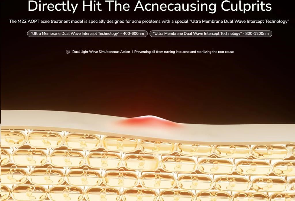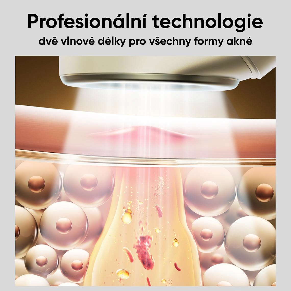 Tento inovativní přístroj využívá unikátní "světelně-biologickou" technologii pro maximální efekt. Dvojitá rázová vlna intenzivního pulzního světla proniká hluboko do pokožky, kde ničí bakterie Propionibacterium acnes a reguluje produkci mazu.