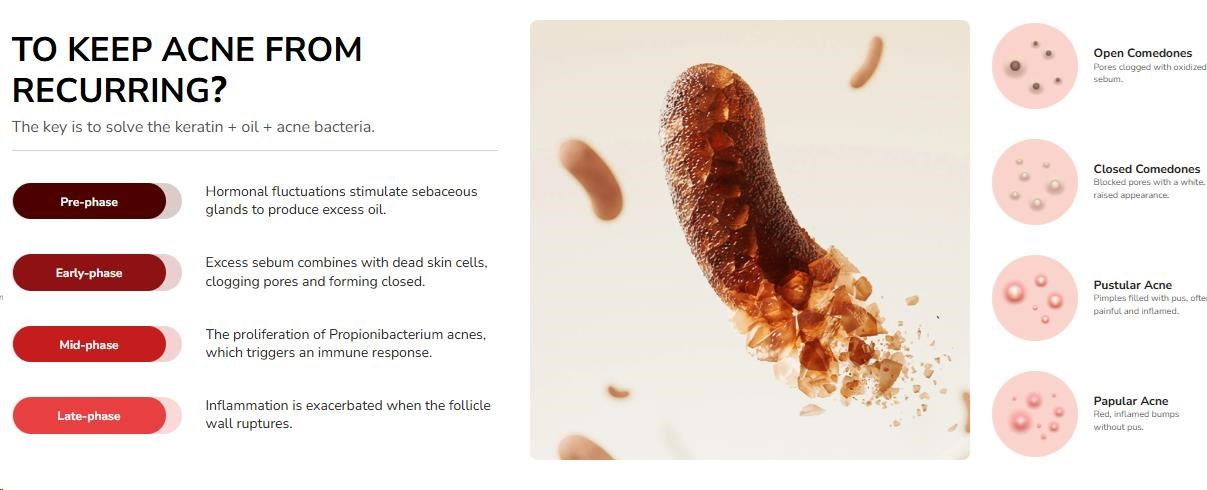 - Prevence návratu akné: Cíleným působením na příčinu vzniku akné (bakterie a maz) efektivně snižuje riziko jeho opakovaného výskytu.