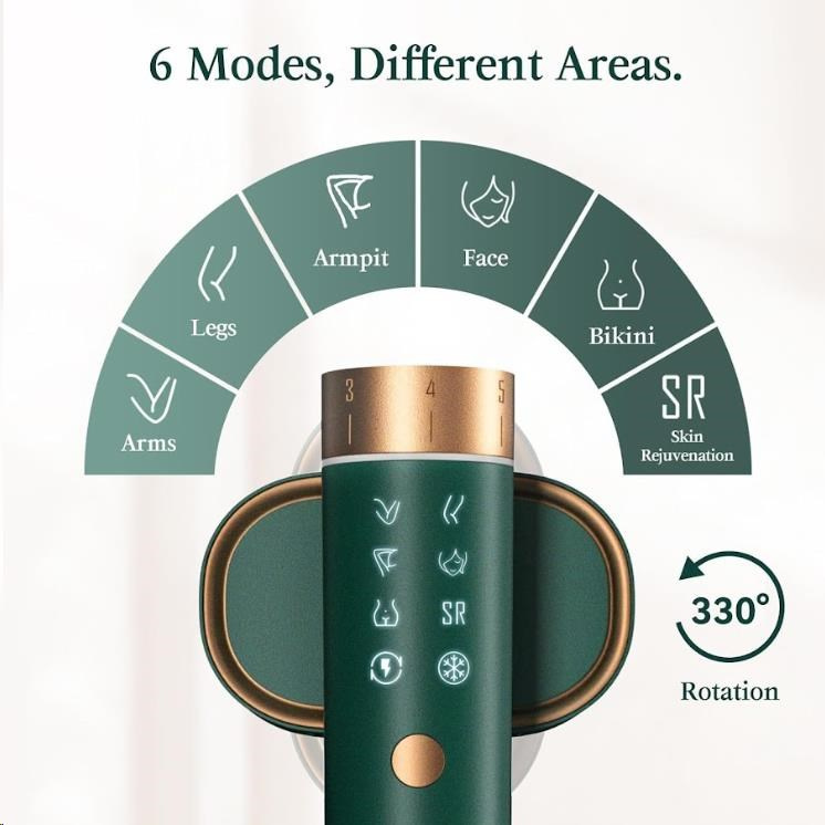 Představte si pokožku, která je nejen dokonale hladká, ale také viditelně omlazená, projasněná a sjednocená. Unikátní safírový chladicí systém a technologie filtrace světla zaručují naprosto bezbolestný a bezpečný zážitek, zatímco speciální SR režim se stará o regeneraci a zkrášlení vaší pleti. Díky inovativní otočné hlavici o 330° dosáhnete snadno i na ta nejhůře dostupná místa.