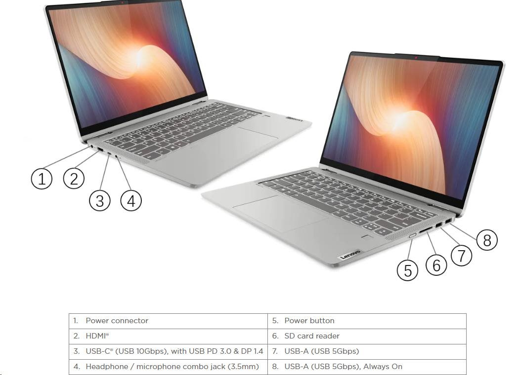Popis LENOVO NTB IdeaPad Flex 5 14ALC7 - AMD Ryzen 5 5500U,14" WUXGA IPS Touch,16GB,512SSD,HDMI,Int. AMD Radeon,W11H,2Y CC