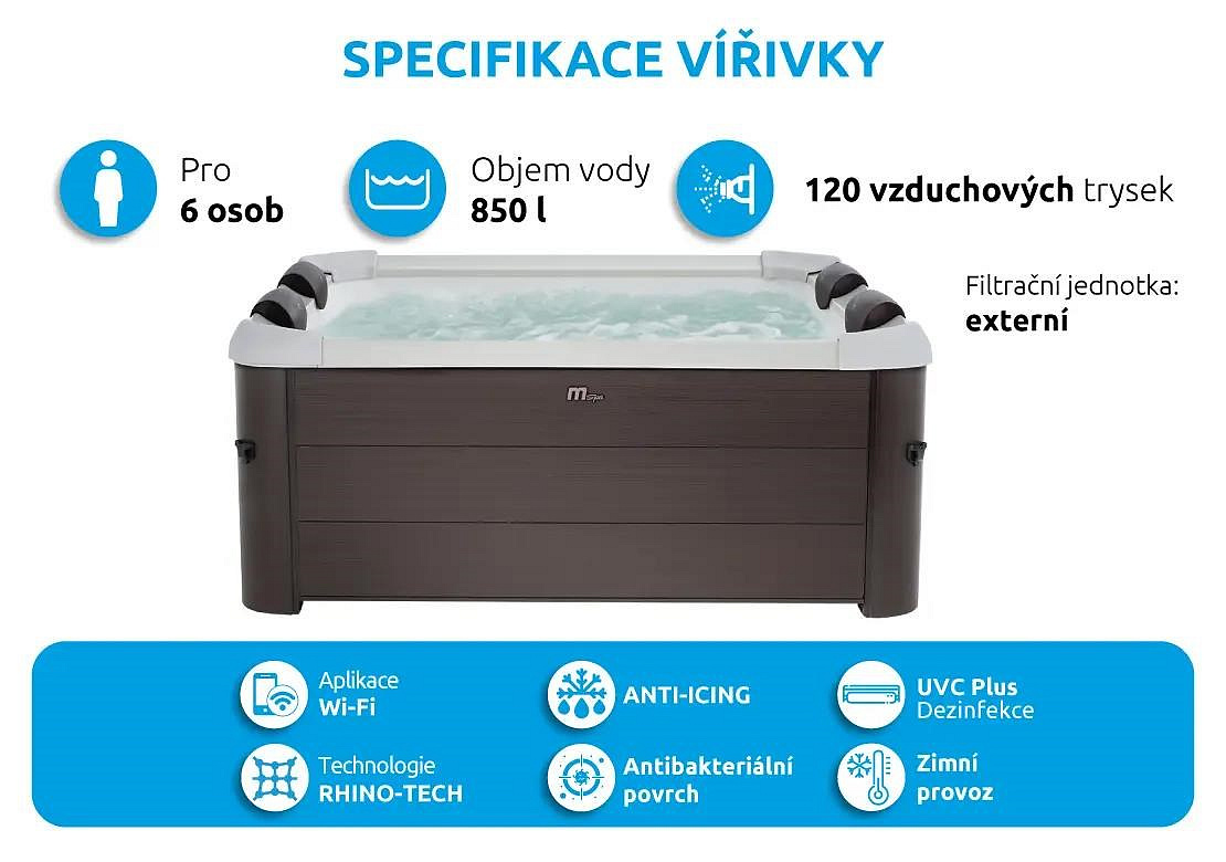 | Funkce vířivky | UV dezinfekce vody; Ovládání mobilní aplikací; Možnost provozu v zimě; Antibakteriální povrch |