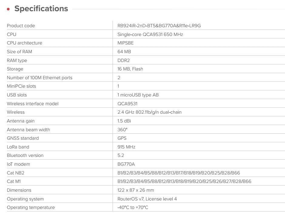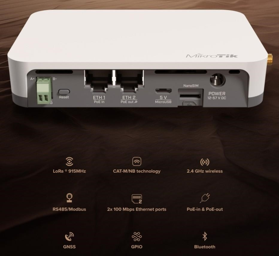 Popis MikroTik RB924iR-2nD-BT5&BG770A&R11e-LR9G IoT Gateway KNOT LR9G kit