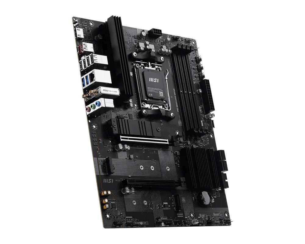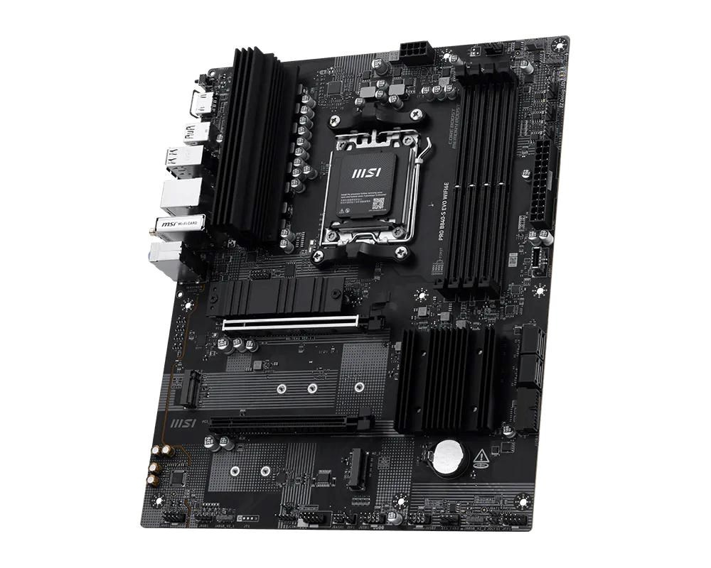 Základní deska PRO B840-S EVO WIFI6E nabízí jednoduchý design s harmonickým barevným schématem, které se dokonale hodí k černým PC sestavám. Je vybavena mnoha exkluzivními funkcemi MSI, Wi-Fi 6E s anténou EZ Antenna, 2.5G LAN a PCIe 4.0 M.2 s chladičem M.2 Shield Frozr. Deska je plně připravena pro procesory řady AMD Ryzen 9000.