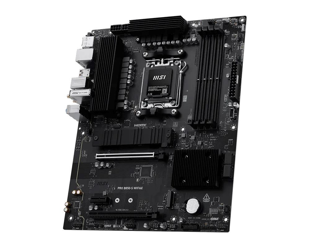 Základní deska PRO B850-S WIFI6E nabízí jednoduchý design s harmonickým barevným schématem, které se dokonale hodí k černým PC sestavám. Je vybavena mnoha exkluzivními funkcemi MSI, Wi-Fi 6E s anténou EZ Antenna, 2.5G LAN a PCIe 5.0 M.2 s chladičem M.2 Shield Frozr. Deska je plně připravena pro procesory řady AMD Ryzen 9000.