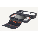• Větší přihrádka ve spodní části pouzdra pojme podle potřeby dokovací stanici, nový ovladač Pro Controller nebo držák Joy-Con 2 Charging Grip. Vedlejší menší přihrádka, oddělená polstrovanou přepážkou a doplněná síťovanou kapsou, je určená pro napájecí adaptér s kabelem a propojovací HDMI kabel.