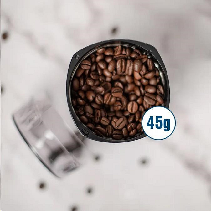 Pokud máte doma kávovar bez vestavěného mlýnku a rádi byste si namleli vždy čerstvou a voňavou kávu, pak je nejjednodušším řešením použít super praktický a cenově výhodný kávomlýnek Orava KM 803, který vám nabídne rovnoměrné namletí kávy během několika vteřin. Tento elegantní bílý kávomlýnek má nůž z kvalitní nerezavějící oceli a výkonný 180 W motor, kterým dokáže umlít zrnka kávy přesně podle vašich představ. Mimořádně účelný kávomlýnek Orava KM 803 dokáže obsáhnout 45 gramů kávových zrn na jedno mletí (cca 6 šálků kávy), díky čemuž budete mít svou kávovou směs předem připravenou i na další porce. Tloušťka namleté kávy záleží na délce mletí, kterou si regulujete stlačením tlačítka. Pro bezpečný provoz má zabudovanou bezpečnostní pojistku proti spuštění mlýnku bez krytu.