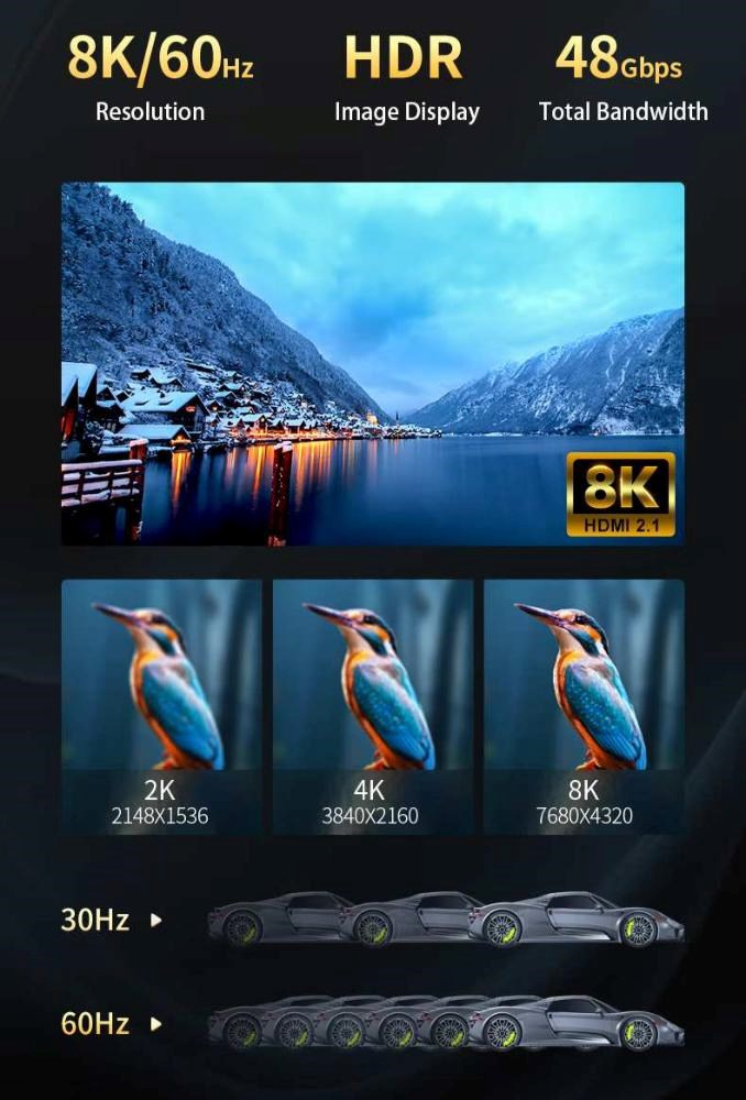 - HDMI 2.1 Ultra High Speed aktivní optický fiber kabel, podporuje HDMI2.1 nebo nižší HDMI2.0 a HDMI1.4