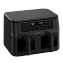 2 zcela nezávislé fritovací koše (každý s kapacitou 5,5 litru) vám umožňují vařit jako ve dvou fritézách najednou. V jedné komoře se tak třeba chystají hranolky, zatímco ve druhé se griluje kuře. Chcete připravit větší porci jednoho jídla? Funkce DUAL automaticky sjednotí nastavení obou košů. Nebo byste rádi současně nachystali maso i přílohu? Pak je tu funkce SYNC, která inteligentně naprogramuje časy tak, aby se všechny pokrmy dodělaly ve stejný okamžik. Žádné čekání, žádné přehřívání ani vystydnutí – jakmile vám fritéza zvukovým signálem oznámí, že je hotovo, můžete vše servírovat.