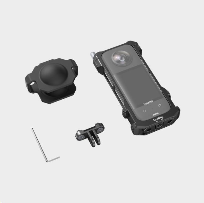 Tvarovaný rám obsahuje silikonové polštářky, zabraňující poškrábání. Pomocí šroubu bezpečně uzamkne kameru, která je vložena do rámu přímo z jeho horní části.