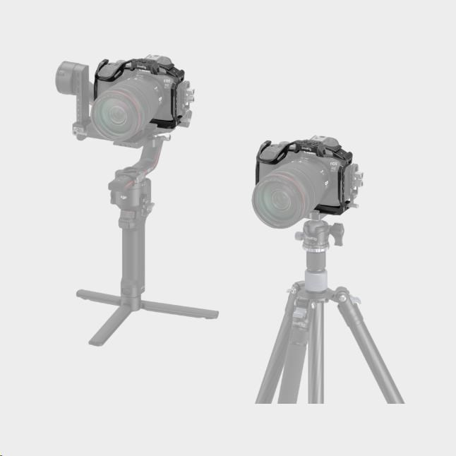 Umísťuje se na Canon EOS R6 Mark II pomocí jednoho spodního šroubu 1/4"-20 a dvou bočních zajišťovacích adaptérů a má gumové podložky, které zabraňují poškrábání.