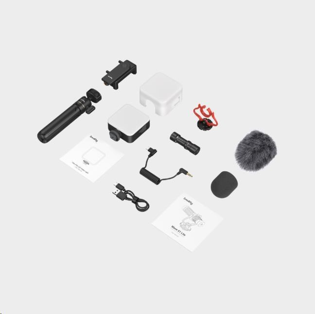 Jedním šroubem 1/4"-20 se stativ připevní k držáku chytrého telefonu, který má dva držáky cold shoe pro mikrofon, LED video světlo atd.