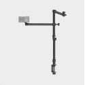 Držák může realizovat libovolné nastavení úhlu zařízení o 360° prostřednictvím kloubového ramene se třemi sekcemi (otáčení sekcí o 180°) a spodního knoflíku.