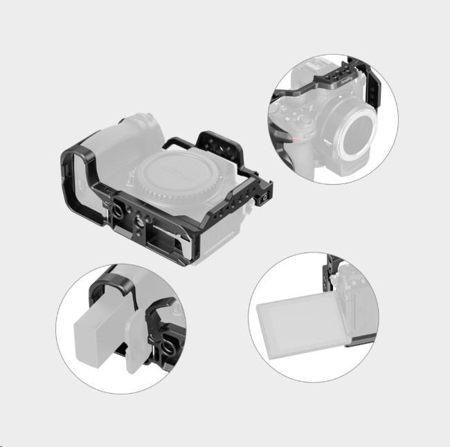 Integrované úchyty pro studenou patku umožňují rozšíření o zařízení, jako jsou mikrofony, LED světla a další, zatímco vestavěné otvory pro popruhy jsou kompatibilní s ramenními popruhy a zápěstními řemínky SmallRig.