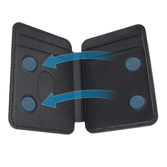 Díky silným magnetům drží perfektně na iPhonu a navíc chrání karty uvnitř pomocí čtyř magnetických uzávěrů.