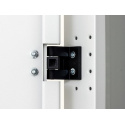 Vlastní systém pantů umožňuje otvírání dveří pod úhlem téměř 180°. Dveře lze snadno demontovat a přestavět na otevírání na opačnou stranu.