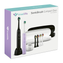 SonicBrush Compact se vám se svými malými rozměry vejde do každé tašky. Prvotřídní zubní hygienu si tak užijete i na cestách. Nabíjecí stojánek může zůstat doma. Baterie v kartáčku vydrží až 30 dní čištění. Svým minimalistickým designem doplní vaši koupelnu a jediné tlačítko zajistí snadné ovládání.