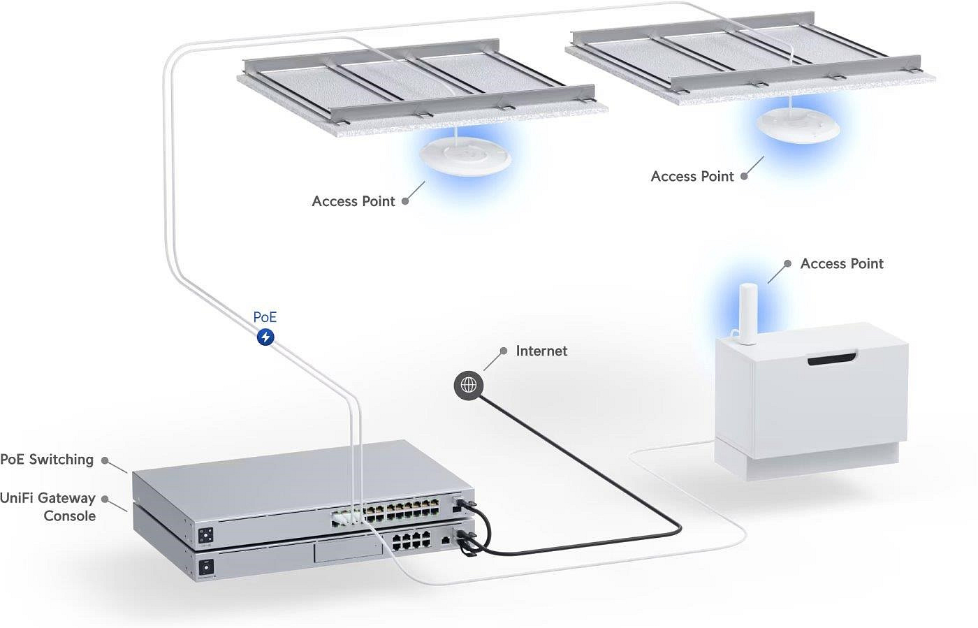 Popis produktu UniFi 6+ Access Point je základní Dual Band WiFi 6 AP (2.4GHz a 5GHz) do menších hal, skladů či kanceláří. U6+ je schopen dosáhnout skvělých propustností. V pásmu 5 GHz (2x2 MIMO) je to 2402 Mbps při použití 160 MHz šířkou pásma a ve 2.4 GHz (2x2 MIMO) je to 574 Mbps, což mu umožňuje podporovat více než 300 současně připojených klientů. Pro připojení do sítě má Access Point Gigabitový ethernet s podporou aktivního (802.3at) ale i pasivního (44 až 57V) PoE. Klíčové vlastnosti • Dual band WiFi 6, podpora 802.11a/b/g/n/ac/ax (WiFi 6) • 5 GHz propustnost až 2402 Mbps (2x2 MIMO) • 2.4 GHz propustnost až 574 Mbps (2x2 MIMO) • Anténní zisk - 2.4GHz (3 dBi) a 5GHz (5.4 dBi) • WPA/WPA2/WPA3 šifrování • Gigabitový LAN port • Napájení přes 802.3af nebo pasivní 44 až 57V PoE, spotřeba 9W • Podporováno UniFi Controllerem od verze 7.3.76 Centrální řízení jednotek Ke správě zařízení je potřeba stáhnout z oficiálních stránek originální software nazývaný UniFi Network Controller, díky kterému lze řídit celou síť. Nespornou výhodou UniFi Controlleru je, že je zcela zdarma bez jakéhokoliv omezení! Tento centrální management umožní nahrávat mapy a nastavit základní parametry i pokročilé funkce jako například SSID, guest účet, úvodní stránku, statistiky provozu i seznam a status asociovaných klientů vždy snadno a rychle. Výhody UniFi řešení • Fast Roaming - bezvýpadkový přechod mezi jednotlivými AP • Wireless uplink (hodí se tam, kam není možné dostat datový kabel) • Až 8 SSID • Detailní statistiky provozu • Guest síť • Load balance - udržování rovnoměné zátěže / přepínání klientů • Omezování rychlosti pro každé SSID Obsah balení • Zařízení • Kit na přichycení na strop/stěnu (plastový a kovový kulatý díl) • Sada šroubků a hmoždinek Technické parametry Bezdrátové vlastnosti Bezdrátové frekvence:2.4 + 5 GHz (dual band) WiFi standardy:802.11n, 802.11a, 802.11ac, 802.11b/g, 802.11ax Přenosová rychlost - 5GHz [Mb/s]:2402 Přenosová rychlost - 2.4GHz [Mb/s]:574 Vysílací výkon 2.4GHz [dBm]:23 Vysílací výkon 5GHz [dBm]:23 Šifrování:WPA, WPA2, WPA3 2.4GHz MIMO:2 x 2 5GHz MIMO:2 x 2 Typ antény:Vestavěná Počet vestavěných antén:4 Roaming:Ano Zisk antény [dBi]:3, 5,4 Konektory a rozhraní Rychlost LAN:(1) 10/100/1000Mbps Gigabit LAN:Ano Napájení Napájení přes PoE:802.3af, 44 .. 57V DC Typ napájení:PoE Typy PoE:PoE-In (pouze) Max. spotřeba energie [W]:9 Fyzické charakteristiky Provedení:Na zeď, Stropní Použití:Vnitřní Tlačítka:Reset Provozní teplota [°C]:-30 až 60 Hmotnost [g]:338 Šířka [mm]:160 Výška [mm]:33 Hloubka [mm]:160 Software Operační mód:Access Point Podpora IPv6:Transparentní (režim bridge) Výchozí IP adresa:192.168.1.20 Výchozí jméno a heslo:ubnt / ubnt.