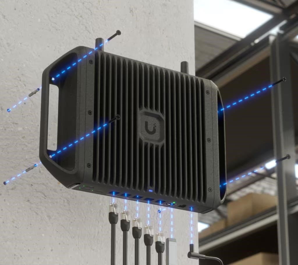 Ruggedized, fanless 10 GbE UniFi Cloud Gateway delivering 350W of total system power for high-density PoE deployments, with advanced routing capabilities and microSD storage for full UniFi application support.. , ,