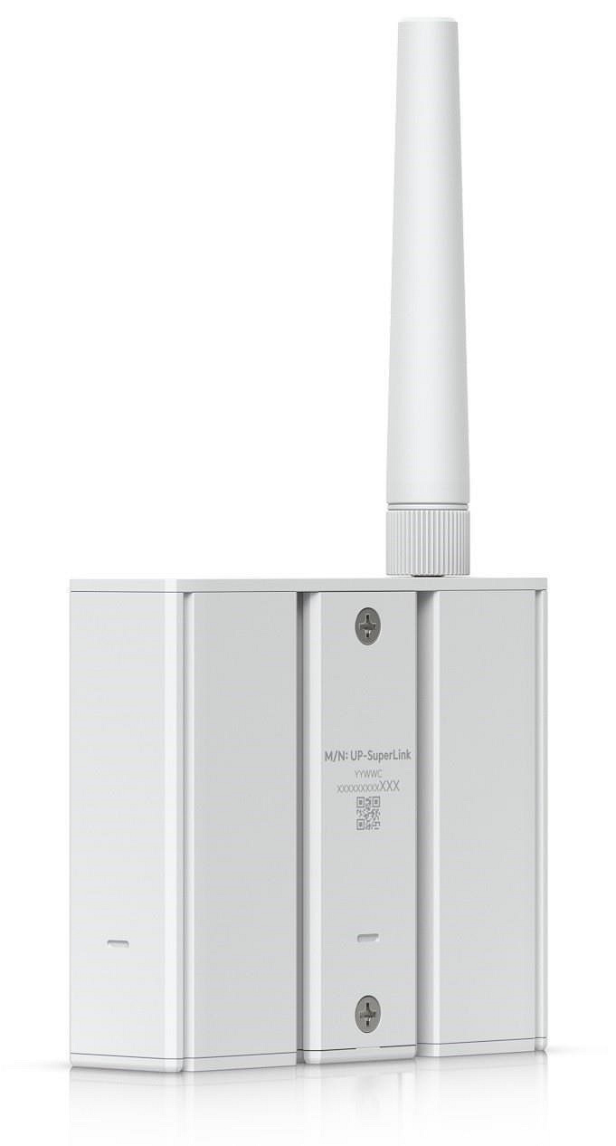 Popis produktu Proprietární bezdrátová brána s extrémně dlouhým dosahem a nízkou latencí pro UniFi Protect a StarLink senzory. Podporuje BLE (Bluetooth® 5.2) a proprietární protokol SuperLink. Brána umožňuje připojení až 96 klientů SuperLink (stále ve vývoji) na vzdálenost až 2 km a až 7 senzorů UP-Sense (BLE). SuperLink Gateway lze napájet prostřednictvím USB Type-C nebo PoE 802.3af. Může být namontována na stěnu nebo DIN lištu. Klíčové vlastnosti • Proprietární protokol SuperLink pro dlouhý dosah komunikace • Podpora až 103 připojených senzorů celkem • Napájení přes USB Type-C nebo PoE Obsah balení • SuperLink Gateway • Držák pro montáž na DIN lištu • Držák pro montáž na stěnu • Vrtací šablona • (2) Šrouby a hmoždinky Technické parametry Bezdrátové vlastnosti Bezdrátové frekvence:Bluetooth, SuperLink Zisk antény [dBi]:3 Konektory a rozhraní Rychlost LAN:(1) 10/100Mbps Napájení Napájení přes PoE:802.3af Typ napájení:PoE, USB-C Max. spotřeba energie [W]:3,4 Napájení přes konektor/svorkovnici:5V / 1A Fyzické charakteristiky Provedení:Na zeď, Na DIN lištu Použití:Vnitřní Tlačítka:Reset Provozní teplota [°C]:0 až 40 Hmotnost [g]:179 Šířka [mm]:82 Výška [mm]:159 Hloubka [mm]:26 Software Management:UniFi Protect. , ,