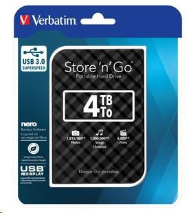 Popis VERBATIM HDD 2.5" 4TB Store 'n' Go Portable Hard Drive USB 3.0, Black