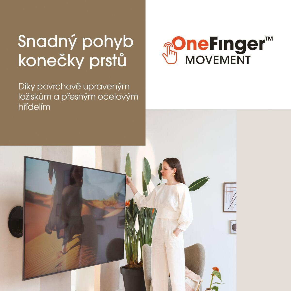 Díky systému OneFinger™ Movement společnosti Vogel můžete televizor plynule přesunout do požadované polohy pro optimální pohodlí při jeho sledování. V závislosti na velikosti obrazovky můžete televizor natočit až o 60° doleva nebo doprava. Systém ochrany obrazovky SPS® zabraňuje nárazu televizoru do zdi (garantováno pro televizory do 65 palců).