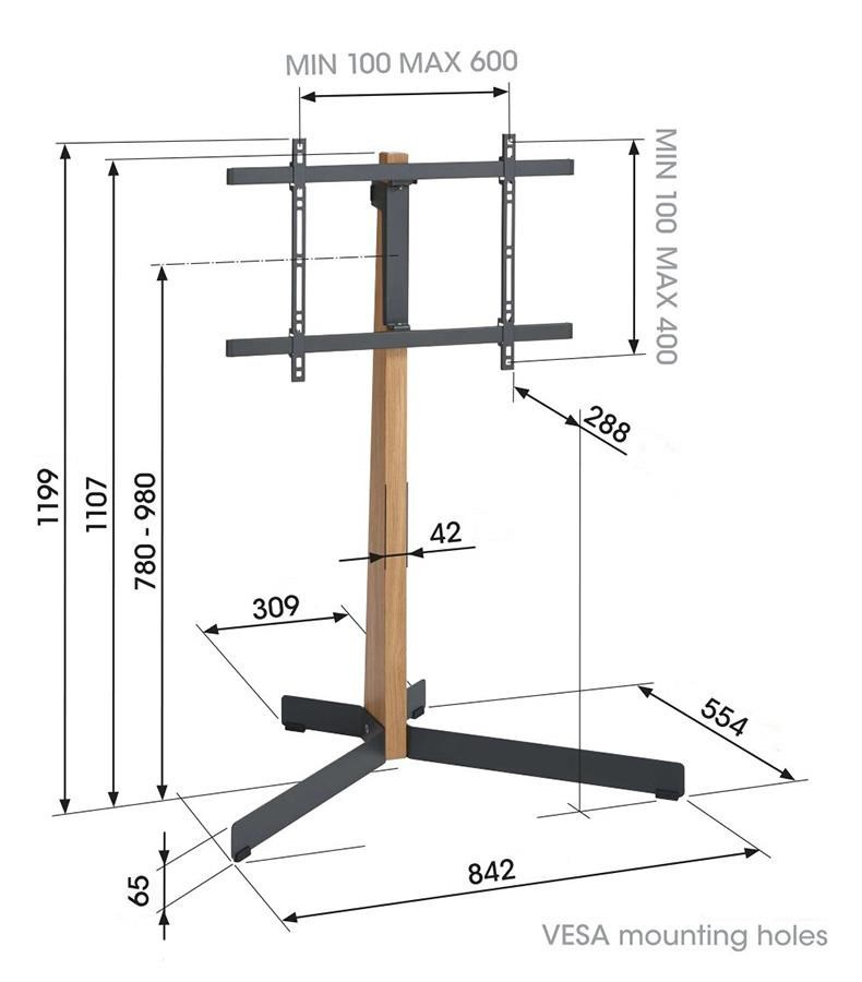 Představujeme Vogel's TVS 3695, dokonale flexibilní, volně stojící TV stojan. Snadno umístěte a nasměrujte svůj televizor díky stojanu s bezpečným, robustním a stylovém designem. TVS 3695 je vyroben z prémiového dubového dřeva s certifikací PEFC a oceli a je ideální pro téměř všechny televizory s úhlopříčkou 40”-77” a hmotností do 50 kg.
