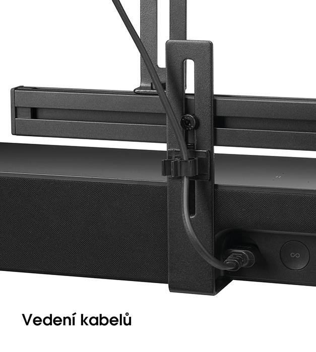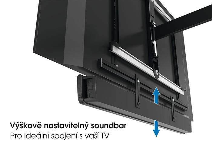 Lze namontovat prakticky na jakýkoliv TV držák. Při natáčení TV se stejně natáčí i soundbar, takže vždy budete mít ten nejlepší obraz bez degradace zvuku.