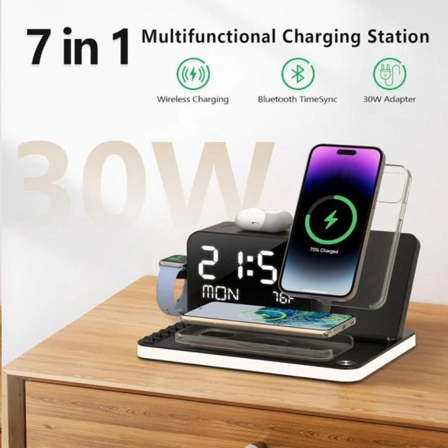 Popis WG Multifunkční zařízení 7v1 (hodiny, datum, teplota, nabíječka telefon+hodinky+sluchátka)