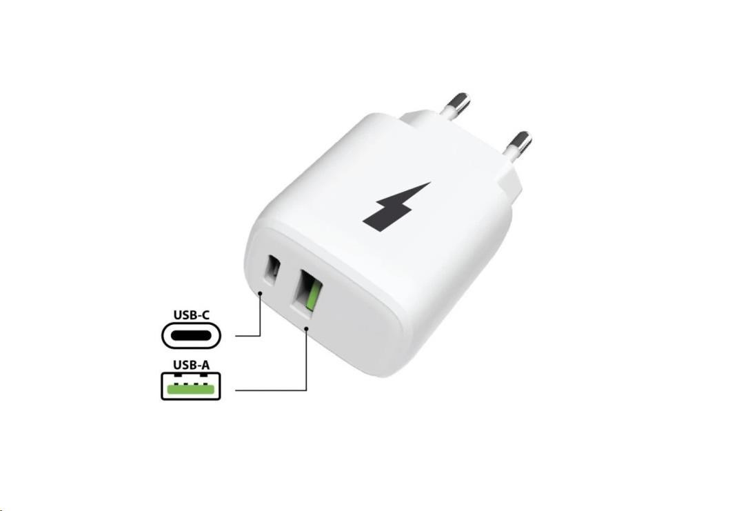Síťová nabíječka se dvěma USB porty v bílé barvě je ideální pro rychlé nabíjení vašich zařízení. Díky svým vysokým výkonům a kompaktnímu designu je perfektní pro domácí i cestovní použití.