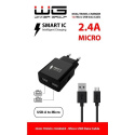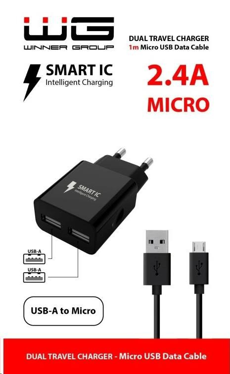 Síťová nabíječka s kabelem MICRO-USB a dvěma sloty USB-A. Můžete tak nabíjet až dvě zařízení najednou. Nabíjet lze všechny kompatibilní telefony nebo jiná zařízení s MICRO konektorem. Tato nabíječka podporuje SMART IC technologii.