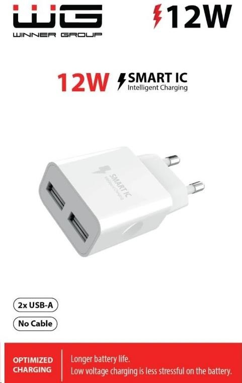 Tato síťová nabíječka je ideálním řešením pro nabíjení dvou zařízení současně. S výkonem 12W poskytuje rychlé a efektivní nabíjení pro chytré telefony, tablety a další elektroniku. Její elegantní bílý design se hodí do každého prostředí, ať už doma, v kanceláři nebo na cestách.